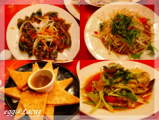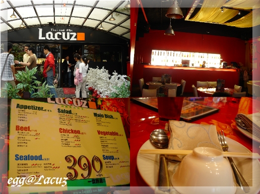 之前在意欲蔓延看到Lacuz早就蠢蠢欲動了!週末約好以前樓友在忠孝新生捷運站集合再步行過去,有了上次oden的經驗這次egg早早抄好了地址,找到濟南路,只是萬萬沒想到原來濟南路有分段,果然大家對我太放心了@@,運氣不好的我們先往二段的方向走,果然走錯,回頭走到二段三段交接剛好人也到齊了,這下大家應該都對Lacuz的地址印象深刻,一波三折後終於到了傳說中位於濟南路三段的Lacuz,據說這家泰國餐廳的裝潢比較特別,一進門果然有著濃濃的pub風,昏暗的燈光營照出不錯的氣氛。