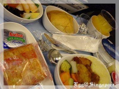 回台的飛機餐,其實一上飛機就無止盡的昏睡,對餐點沒什麼大印象,下面的是喇叭婷的中餐,沙拉上的幾隻大蝦看起來還不錯,主餐就...很普通