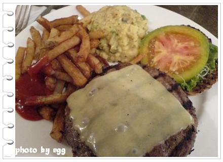 薯條要趁熱吃,因為怕加起司醬薯條會變軟,所以就沒有加20元淋起司醬,在我心裡只要剛出爐的薯條都好吃,馬鈴薯沙拉裡面好像有酸黃瓜還是青椒之類的,呃...那個...蠻特別的,不是很合我的胃口,漢堡就不錯,是全麥麵包考的微焦,冷了還是不錯吃,漢堡肉上面還有一片起司,好大一片,沒辦法夾著麵包吃,所以我是用刀叉吃完全程的,這是小的第一次把苜蓿魚目混珠吃進去,不然光吃那麼大的漢堡肉會很膩,大致上來說還蠻喜歡的囉!