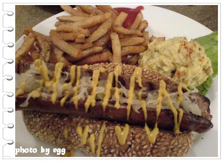 學長的德國香腸+薯條+馬鈴薯沙沙拉,賣相不錯,不過評價沒有日耳曼小鎮的優