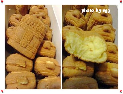 外型是大鐘的形狀,跟名字相呼應,熱呼呼的釣鐘燒裡面包著卡士達內餡,香氣十足,而且涼了也很好吃喔