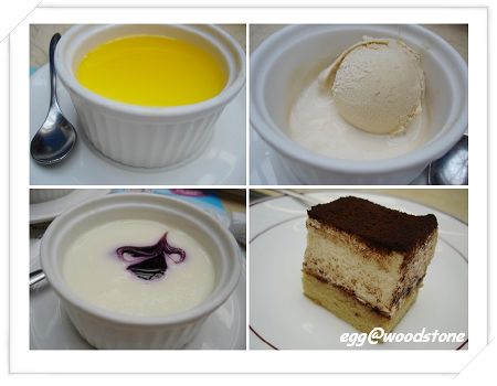 下面這四項甜點,通通都是不推薦的,不知道為什麼無限供應的草莓冰淇淋沒有了,換來薑味冰淇淋,提拉米蘇挖了一口後沒有勇氣在挖第二口...總之...以後趁早點草莓冰淇淋就是了