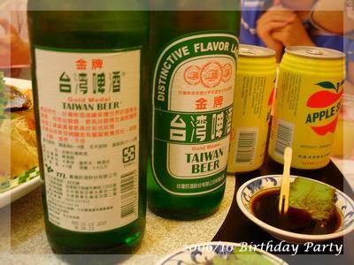 自家人吃飯,席開三桌,最熱鬧的當然是小孩桌嚕!還沒上菜有papa表演睫毛頂牙籤的特技,大姑姑發放韓狗小禮物,因為週六餐廳生意好,一直等到飢腸轆轆才上第一道冷盤,冷盤一上,一群酒家女慫恿、催促小老闆去偷拿金牌台啤跟蘋果西打,一直喝果汁也是會膩的:P,而且我們對大人杯中的人參酒一點興趣都沒有,後來一群忘恩負義的小鬼直嚷啤酒是我跟pinky 說要喝的,哼哼!酒一開還不是大家的杯子都湊過來,偷偷告訴眾姊妹們,回家阿嬤有問我們喝幾瓶,還直說,盡量喝沒關係![]()