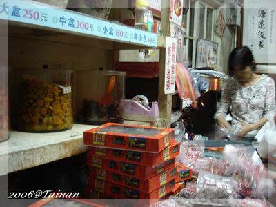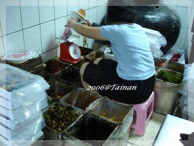 原來包裝過程是這樣的隨性,地上幾只鐵桶裝著滿滿的蜜餞,果然是百年老店遵循古法製作,沒有任何衛生局掛保證的標籤,不過貪吃的人還是勇敢買下去,想也知道這種蜜餞類能有多乾淨衛生!不怕不怕!都吃那麼多次了,我應該有個鐵胃才是!