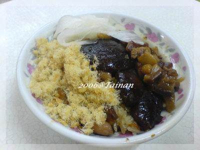 不知道是不是南部的米糕都特別豐盛,大香菇、肉燥、醃羅蔔、肉鬆滿滿一大碗,不過米糕對我來說過於濕軟,不是很愛啦!