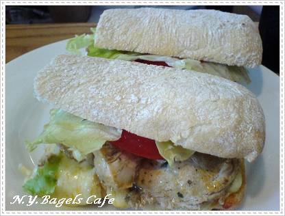 特別交代服務生去芥末,厚片雞胸肉鮮嫩多汁,最棒的是香濃起司,一樣配上生菜、蕃茄,OEC!