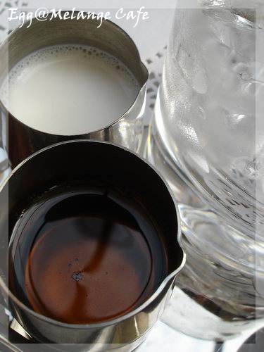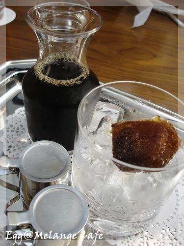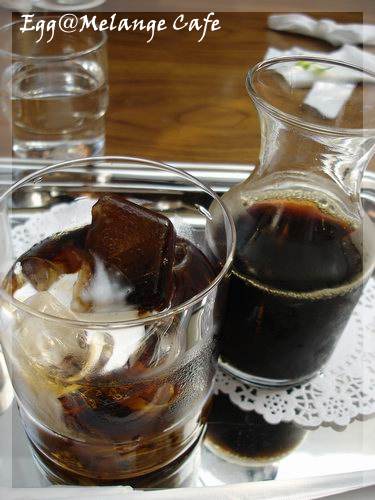 杯子裡除了一堆冰塊還有一大顆咖啡冰