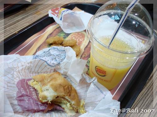 一早8點,準時出現在第二航廈,前晚因為很聰明的辦好網路報到,所以不需要跟眾人擠櫃臺,很順利的沒10分鐘就拿好機票、寄完行李,事情辦完自然想到民生大事,機場最佳選擇,當然是價格平易近人的漢堡王^^