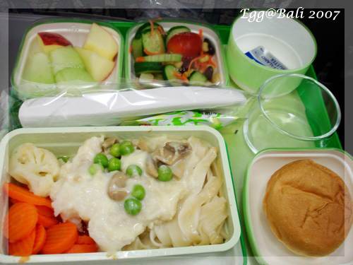 圖片的魚排受劉氏夫妻一致稱許,可能輩以往長榮的餐點嚇到XD,麵雖然過軟,不過我可以肯定比飯好多了