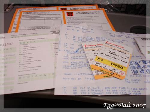 另外,入境卡上,會要求你寫上居住地點,根據前人經驗,別寫太好的飯店或villa,免得出關的時候被刁難,收集旅遊資料的時候看到,有人因為穿戴名牌,又住了貴桑桑的飯店,所以被印尼海關問東問西,其實目的也只是要你乖乖奉出賄賂金,還好我一身破爛,倒是不必擔心這點(真是苦中作樂