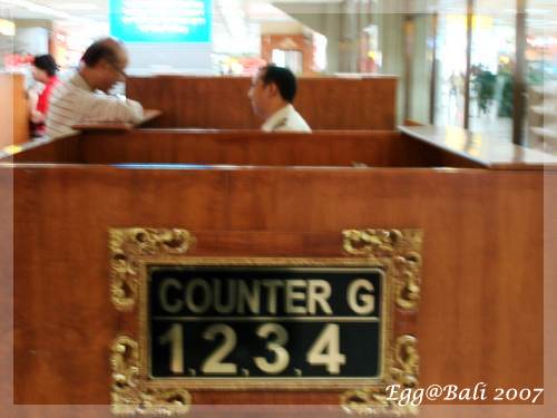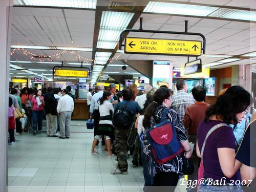 半個鐘頭過去,人有漸漸消化的傾向,不過是我們後方的同胞越來越少@@,不是有人插隊,而是很多人都跑到本地人通關的走道去,然後塞個一塊美金就可以順利通過,想當年我第一次到巴里島,下機的時候好像也是用這招快速通關,海關念念名字就莫名其妙的能走人了。