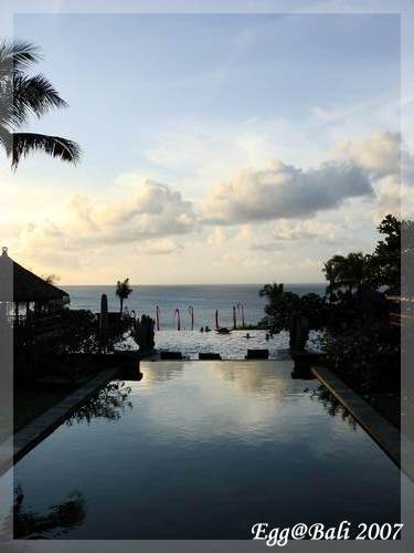 從機場出來,與長榮配合的當地旅行社派了"陳鏡宏"導遊送我們到Ritz Carlton ,剛到巴里島,沿路的手工藝品店、飯店、VLLLA都足以引來我們一陣驚呼,位於金巴蘭的Ritz Carlton 距離機場大約20分鐘,不知道從什麼時候開始,車子緩緩蜿蜒向上,感覺有點熟悉,就像陽明山的仰德大道,經過洲際、四季飯店,終於抵達Ritz Carlton