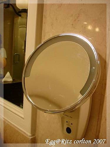 洗臉台的右方有面放大鏡,乾淨清楚,所以阿髒一照無所遁形