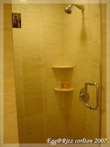 淋浴間的蓮蓬頭是固定式的,對只會趴著洗頭的我造成很大的不便,第一天站著洗頭,水流滿面,洗完滿眼通紅,後來幾天都選擇趴在洗手台洗@@
