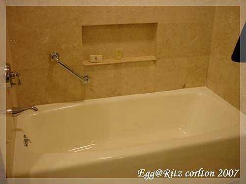 房間的右半部是個人浴缸,一個人泡澡剛剛好。