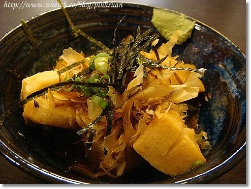 上桌時燒燙燙,除了上面小立方體的鮭魚外還傳來陣陣柴魚清香