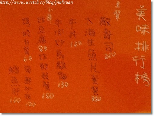 附上牆壁上的私房菜跟美味排行榜給大家參考