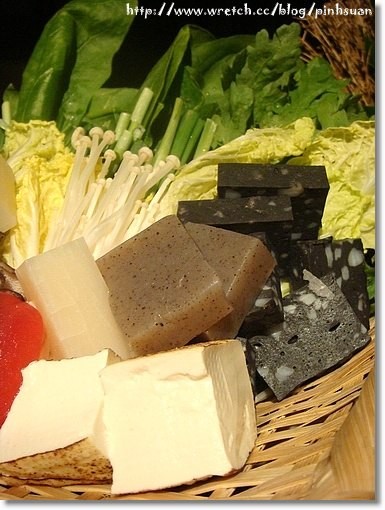 菜皿裡除了蕃茄、烤過的豆腐、蒟蒻、菇類