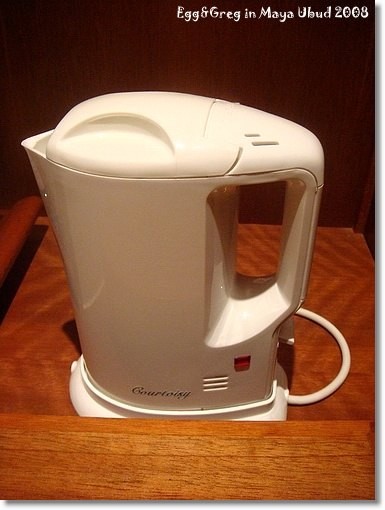 熱水壺個前方還放著免費茶包跟咖啡杯