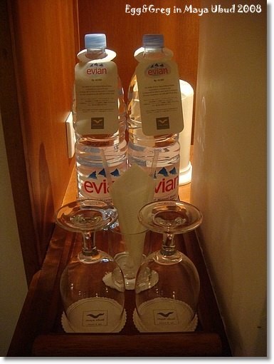 另一側放著兩大瓶EVIAN礦泉水,這種要錢的就別去碰了