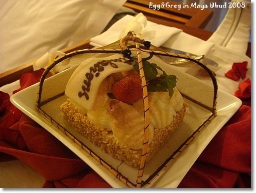 小蛋糕也附上兩組刀叉,當然不忘雞蛋花裝飾