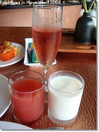 後面那個高腳杯裝的就是...一大清早有誰會倒來喝酒精飲料---香檳