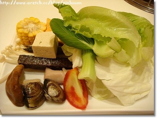 另外菜盤裡還有蛤蜊、蝦子、玉米、火鍋料等跟一塊南瓜