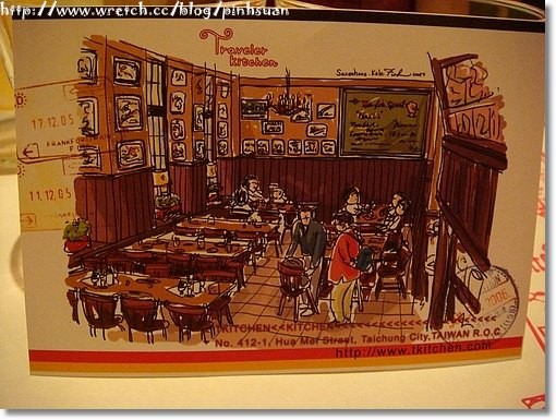 點完菜,服務生送來明信片一張