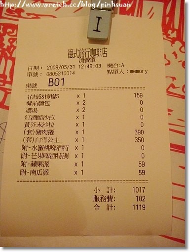 加上服務費1119