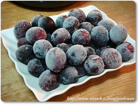 重點是,記得把葡萄結成硬梆梆的石頭冰塊