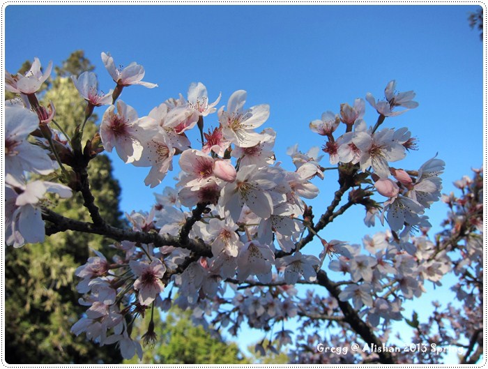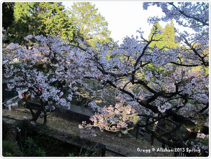 ps我們賞櫻的那天剛好是阿里山櫻花季開始的第一天,花況已經大致盛開完畢,有些櫻花甚至開完冒出新芽了,如果照著官方時間才上山賞花,不免失望,櫻花花期又短,臨時來一陣噢,嬌貴的花瓣大概也都被打落,所以要上山前,還是要多研究一下開花狀況喔免得失望