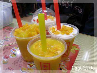 最後,看了很久的menu,我們點了粒粒芒果爽、粒粒芒雪蛤爽、芒椰雪蛤爽、芒椰芒果爽,大約都是20HK,不過我們怎麼全部都點了芒果系列 = ="