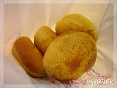 稍稍休息後,繼續在旺角街頭遊蕩,突然香味撲鼻,原來是波羅包出爐了,當然馬上衝進去買了,一個才2HK,便宜到掉渣,雖然我們夾了波羅包跟牛油波羅包,不過吃起來好像都一樣,而且這邊的麵包店沒有準備內袋,我們四個波羅包就這麼赤裸裸的被裝在提袋,還挺不習慣的。