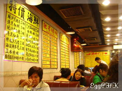 照例,菜單非常複雜,落落長好幾張,還有牆上貼了一堆放大版菜單,看來看去也不知道怎麼點,還要翻譯一下菜名,老闆早就等的不耐煩,在我仔細研究燒臘、煲仔飯跟粥品的同時,還大聲的叫我們要點單點熱炒才好吃,切!姊姊要吃什麼還要你管喔!不過人在屋簷下,老闆氣勢太強,操一口像罵人的廣東口音,為了不在腳酸死的時候被敢出去,只好微笑向老闆婉拒,然後接受老闆超不耐煩的臉色@@