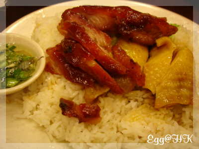 叉燒燒雞飯,飯還是很多很多,不過都是肉,配菜只有幾葉生菜,大概香港的菜很貴吧!可是他們不是都會從大陸進口嗎@@