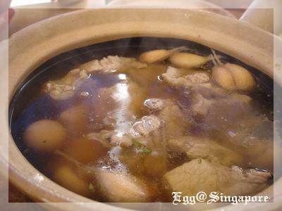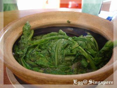 茼蒿菜,有點傻眼,這不是火鍋裡要加的嗎?而且在台灣只有冬天吃的到,沒想到四季如夏的星國也有,上桌的時候依然是一大甕。