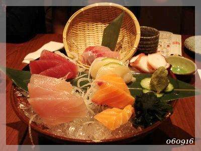 根據本人不負責任的猜測,應該是鮪魚、鮭魚、旗魚、章魚、生干貝、紅甘,因為不敢吃生食,這盤我只吃了QQ的章魚,不過看到同學們滿足的表情就知道鮮度很夠!