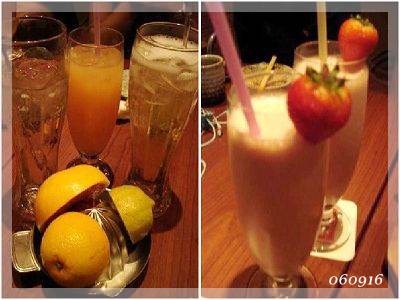 話說,這真是個費力的飲料,當大家快快樂樂輕輕鬆鬆有氣質的啜飲各式飲料的時候,本人正辛勤的在榨果汁,之前喝柳橙沙瓦,只要把柳橙汁擠出來就大功告成,這次為了嚐鮮點了漏漏長的飲料,結果擠到手酸死,還好沒有因為擠完耗費太多體力又餓了@@,不過擠完我的檸檬、葡萄柚、柳橙汁,加進沙瓦,飲料頓時豐富起來,不過酒精成分感覺更低了。
