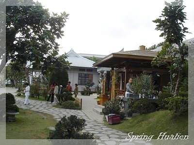 大門進去的就看到萬佛號下的靜思精舍還有象徵佛家的蓮花,正值用餐時刻,才拍幾張照,師兄不斷好意的要我們到裡面一起用膳,雖然本人愛吃青菜,可是對有素菜味道的食物向來敬謝不敏,一旁的桂格更是無肉不歡,客氣的婉拒師兄,沒想到過沒幾分鐘,還是不斷有師兄師姐熱情招呼要我們一起用餐,最後只好不好意思的告訴他們:『我們吃過嚕!』入內參觀必須脫鞋,懶人我們,就在門外參拜觀音大士,虔誠心意不減。