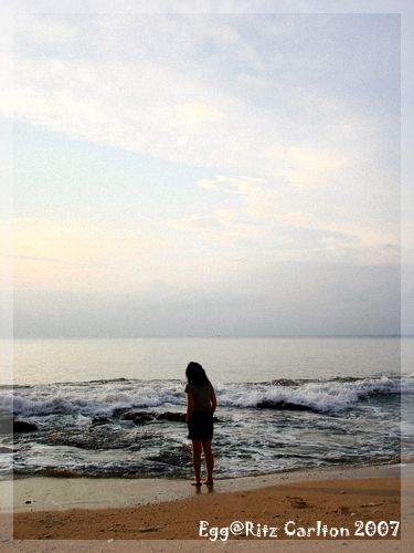 偌大的沙灘好像被我們四個人包下來,是不是住在RITZ的大部分旅客都不知道有這樣一個地方啊?遠遠的那頭有個小小的房子