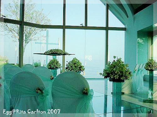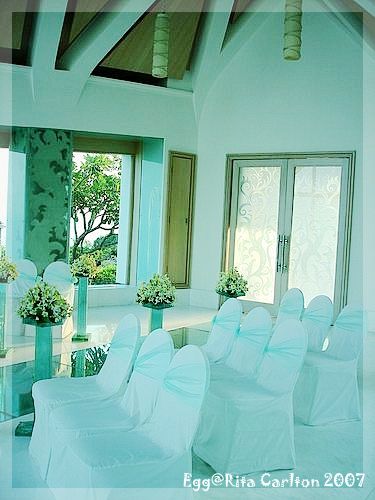 不能免俗的走道兩邊一定要有美麗的鮮花,連椅背都別具巧思,在這邊結婚到底要灑多少大洋啊?