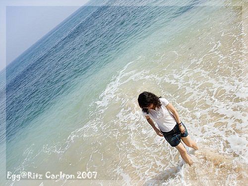 漸層的海是最吸引人的,從白浪滔滔到藍綠色,然後慢慢轉深,再仔細也無法劃分大海顏色的分界,一切都是這麼渾然天成,忍不住想下去踏浪,只差沒拿條布巾上演在海邊的紅塵呀滾滾!