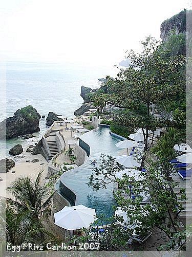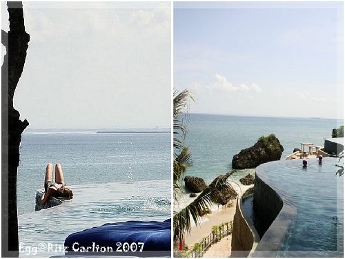 左邊圖片的大膽外國人乾脆躺在池邊做日光浴好像很enjoy,看起來很恐怖,其實對照一下右邊的圖就會發現下面不是懸崖啦