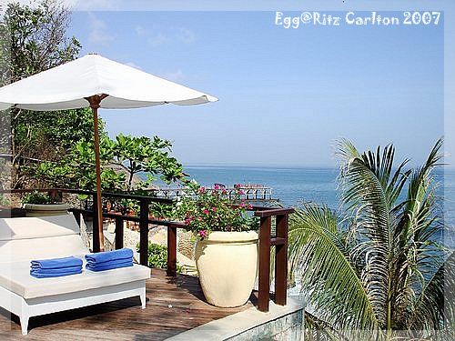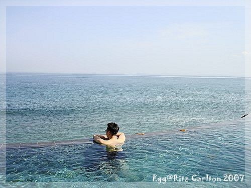 每個角度看這個流線型的泳池都有不同的發現,從泳池的後面,是麗池最擅長的造景,泳池跟海連成一線,讓你大海泳池傻傻分佈清楚,嗚嗚!我也好想趴在那邊看風景啊!