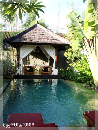 ULIN VILLA這個私人空間實在太棒了,忍不住多給他幾張照片,在服務小姐講解結束後,忍不住拿著相機狂照,並且阻止迫不及待想 跳進泳池的GREG,想游泳可以!!!要先幫我前前後後認真的照完照片,才放你去游泳!