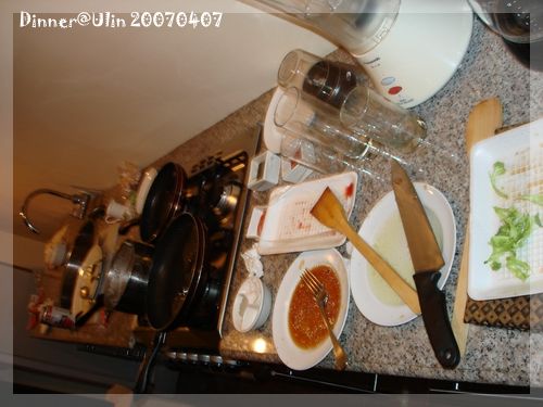 打完仗後,廚房的杯盤狼藉就留給服務生收拾,在這邊不得不感謝ULIN的廚房裡放了好幾套碗盤、杯子,就算用完沒洗,抽屜裡還是可以不斷的拿出乾淨的白色杯碗,還有要讚揚一下天下的媽媽們,為什麼他們總是能不慌不忙煮出一大桌菜還能從容不迫的將廚房清理乾淨,