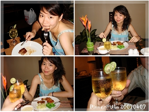 吃完餐,將餐桌上的杯盤沒良心的丟到廚房,倒好飲料找劉氏夫妻來切蛋糕!過來的時候還奉獻出他們冰箱的BINTANG啤酒,真感心,連續兩年很恰巧都在國外過生日,忘了貪心的在ULIN許願,希望下個生日還是可以逍遙的在某個國家度過!另外,回來看圖片才發現...我拿刀的姿勢還挺嚇人的