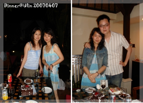 吃飯前,從KUTA回來的YENYU說等等VILLA會送蛋糕來,搞的我一頭霧水,原來是下午GREG請櫃臺代訂蛋糕,後來服務小姐說在看護照的時候發現是我的生日,ULIN很大方的招待蛋糕,我這才瞭解為什麼在BINTANG有人一直狂催我回來,看我慢慢嫌晃還面有難色,我想買個小蛋糕也被斷然拒絕,原來是怕回來晚了,錯過送蛋糕間。