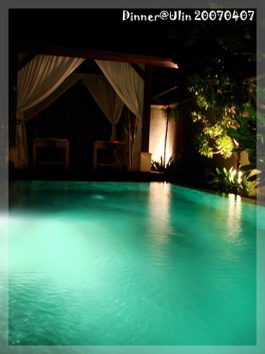 回到房間,看著燈光點綴閃閃發亮的泳池,不游一下好像說不過去,配著GREG帶去的山海音樂,又在水面飄盪一陣子,害我回台灣後,聽到當時游泳聽的音樂,不自覺就會想到在ULIN游泳的美好回憶,然後想著何時可以在去巴里島