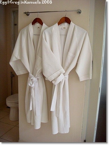 晚上按摩結束,小姐拿浴袍來讓我們穿